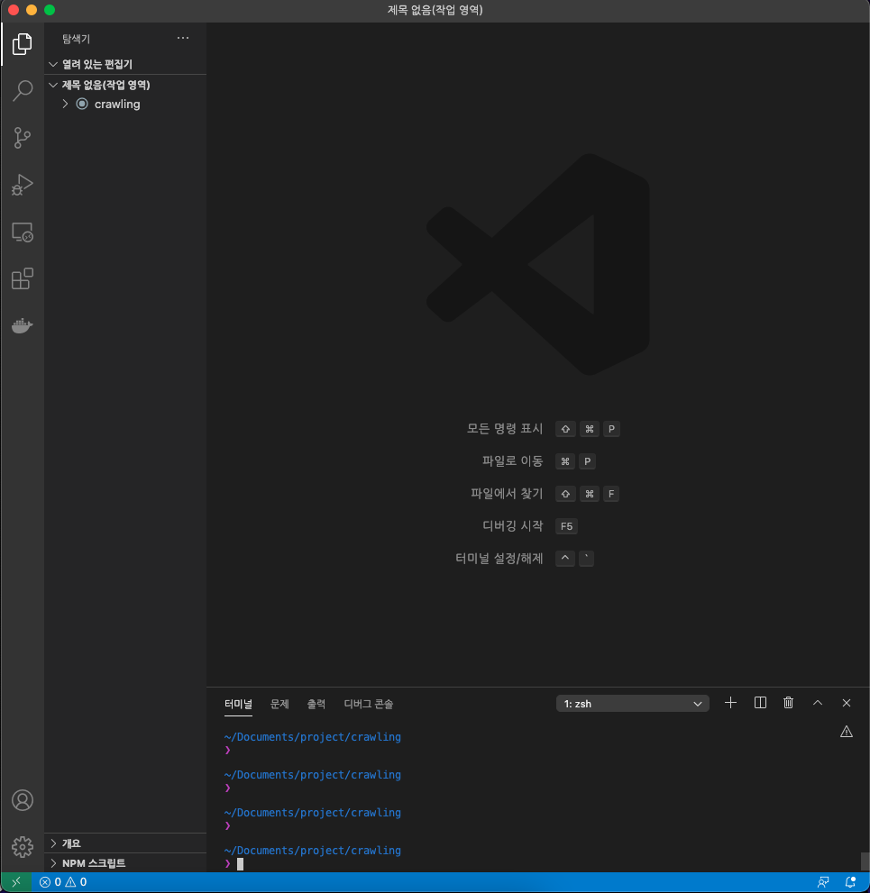 crawling이라는 폴더를 만들고 나서 에디터로 작업창을 구성하자