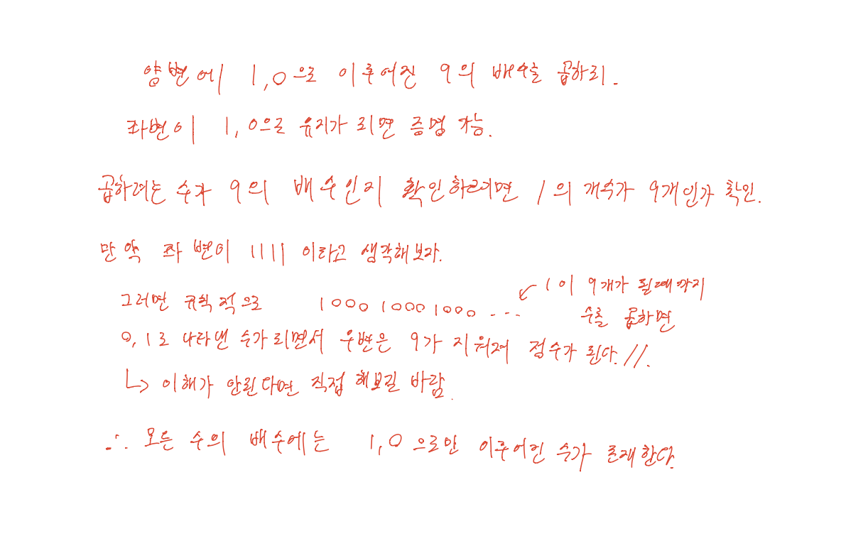 모든 숫자들의 배수는 0,1로만 이루어진 숫자로 만들 수 있다를 증명하였다.