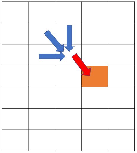 2. ( i-1, j-1 ) 칸의 경우 대각선으로 이어지는 경우 dp[1][i][j] = dp[0][i -1][j-1] + dp[1][i-1][j-1] + dp[2][i-1][j-1]
